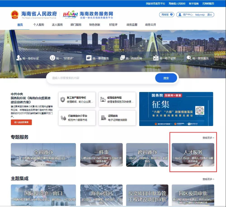 步驟3:進入人才事項服務:點擊“首頁”,點擊“人才服務”圖標。進入人才事項服務頁面。