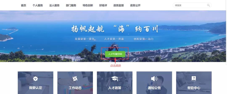步驟1:點擊“人才專屬空間”進入人才專屬空間,如下圖: