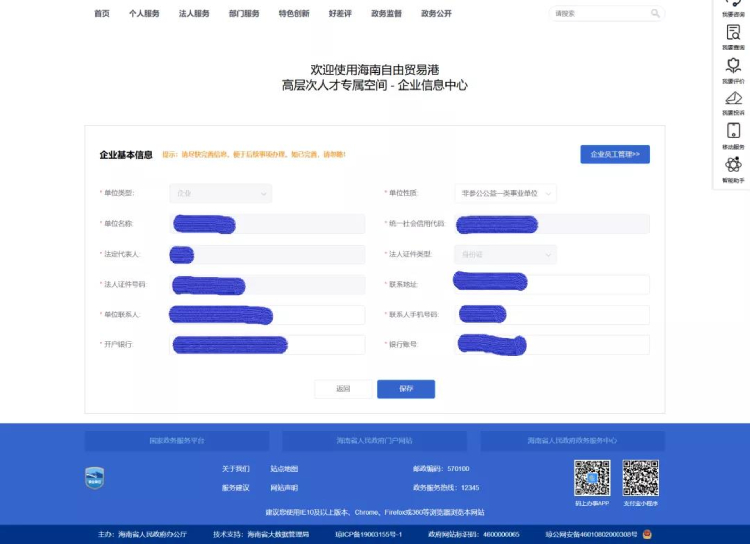 步驟2:在企業(yè)專屬空間維護“單位基本信息”,填寫完成后點擊“保存”進行存檔,需補全信息如下圖: