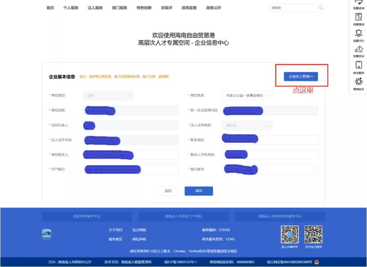 步驟3:點擊“企業(yè)員工管理”進入企業(yè)員工管理界面,進行員工管理,如下圖: