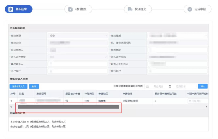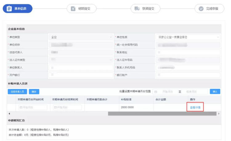 步驟4:員工信息確認后,點擊“下一步”進入材料提交頁面,如下圖: