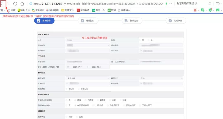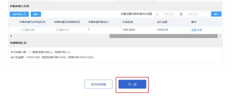 步驟3:拖動滾動條查看并編輯完善員工申報信息,滾動條拉到最右側(cè)點擊“查看詳情”可以查看員工能申報詳細信息,如下圖: