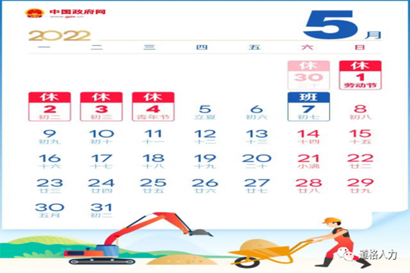 根據(jù)國(guó)務(wù)院辦公廳關(guān)于節(jié)假日的放假時(shí)間規(guī)定,結(jié)合公司實(shí)際情況,“五一”國(guó)際勞動(dòng)節(jié)從2022年4月30日(周六)至5月4日(周三)放假,放假時(shí)間為五天。2022年5月5日(周四)恢復(fù)上班。