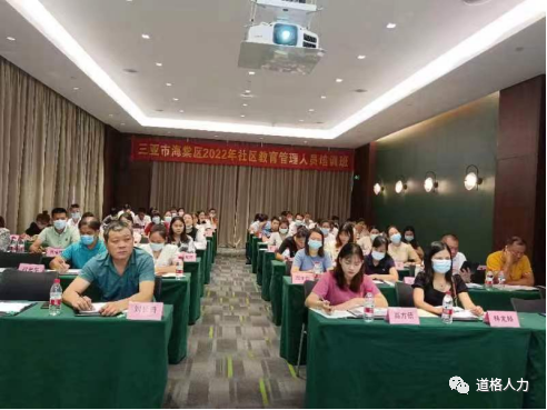 由三亞市海棠區(qū)教育局主辦,海南道格人力資源開發(fā)服務(wù)有限公司承辦三亞市海棠區(qū)2022年社區(qū)教育管理人員培訓(xùn)班,于2022年 7 月 6 日開班。參加培訓(xùn)的學(xué)員有海棠區(qū)區(qū)直單位、村居委會負(fù)責(zé)社區(qū)教育的工作人員、社區(qū)工作管理人員、各中小學(xué)校及幼兒園管理人員,共計(jì)60余人。
