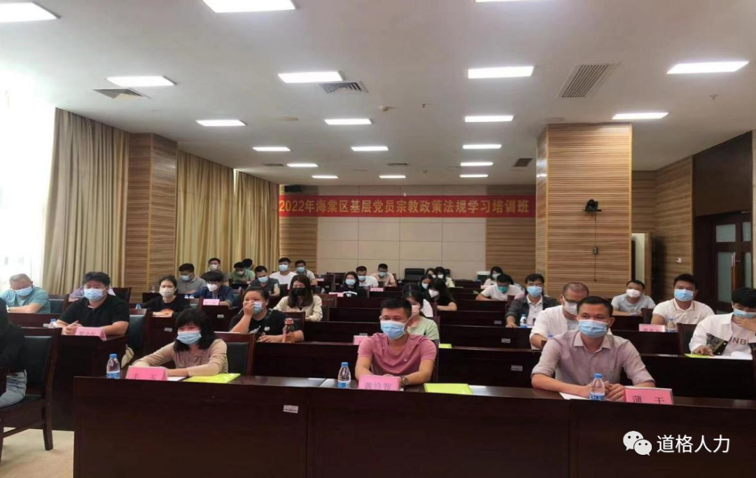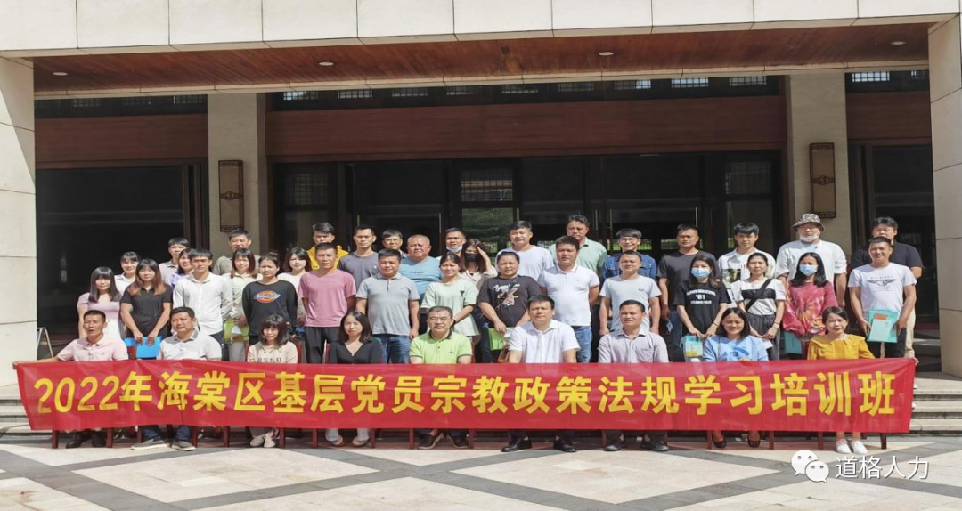 由中共三亞市海棠區(qū)委統(tǒng)一戰(zhàn)線工作部、中共三亞市海棠區(qū)委組織部聯(lián)合舉辦,海南道格人力資源開(kāi)發(fā)服務(wù)有限公司承辦的2022年海棠區(qū)基層黨員宗教政策法規(guī)學(xué)習(xí)培訓(xùn)班,于2022年10月25日開(kāi)班,此次培訓(xùn)班為期四天,參加培訓(xùn)人數(shù)為44人。