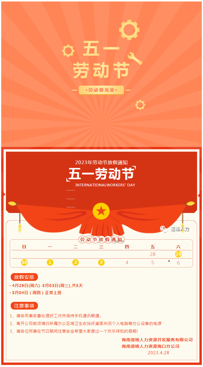 道格人力丨2023年勞動(dòng)節(jié)放假通知
